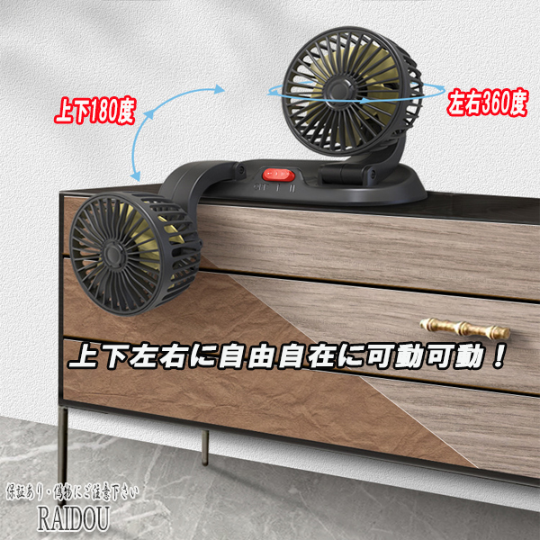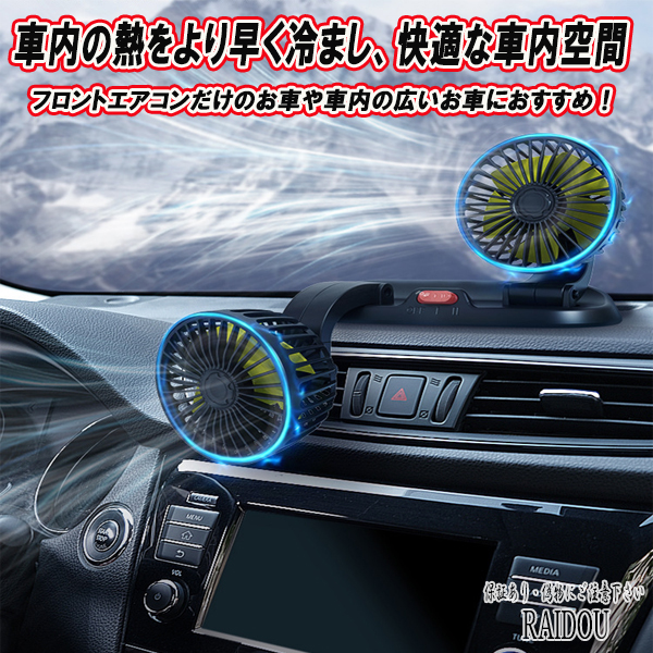 車用 扇風機 カーファン 車載扇風機 ダブルファン 角度調整可能 2段階風量調整 5枚羽根 シガーソケット 車用扇風機 小型扇風機 車内 サーキュレーター ファン 強力 涼しい 静音 ひんやり 暑さ対策 車中泊 カー用品