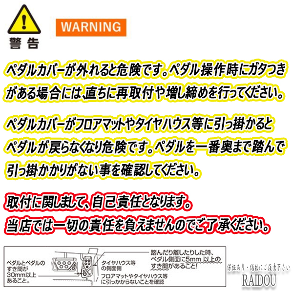 ※必ずお車のペダルと商品ペダルサイズをご確認の上、お買い求めください。