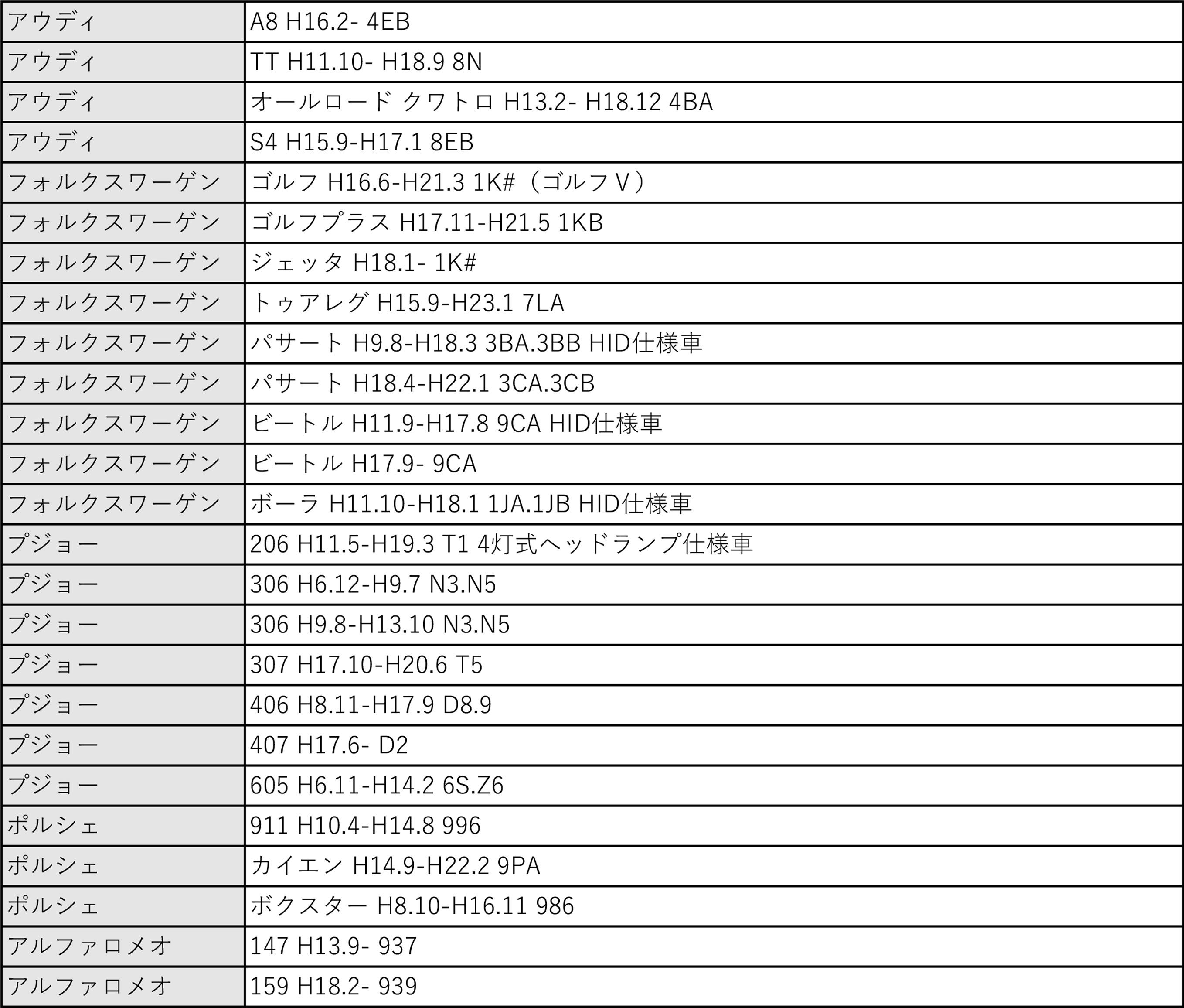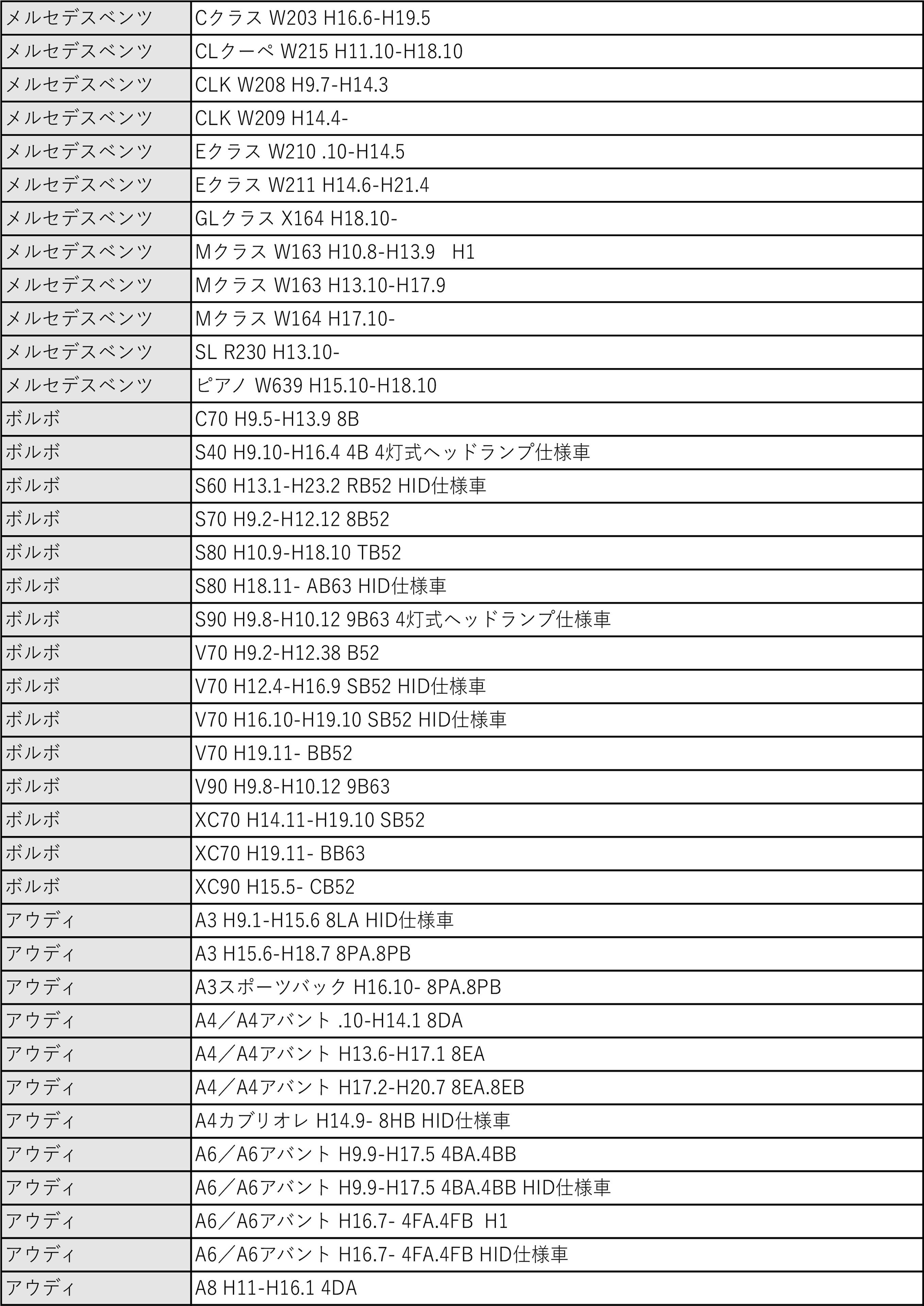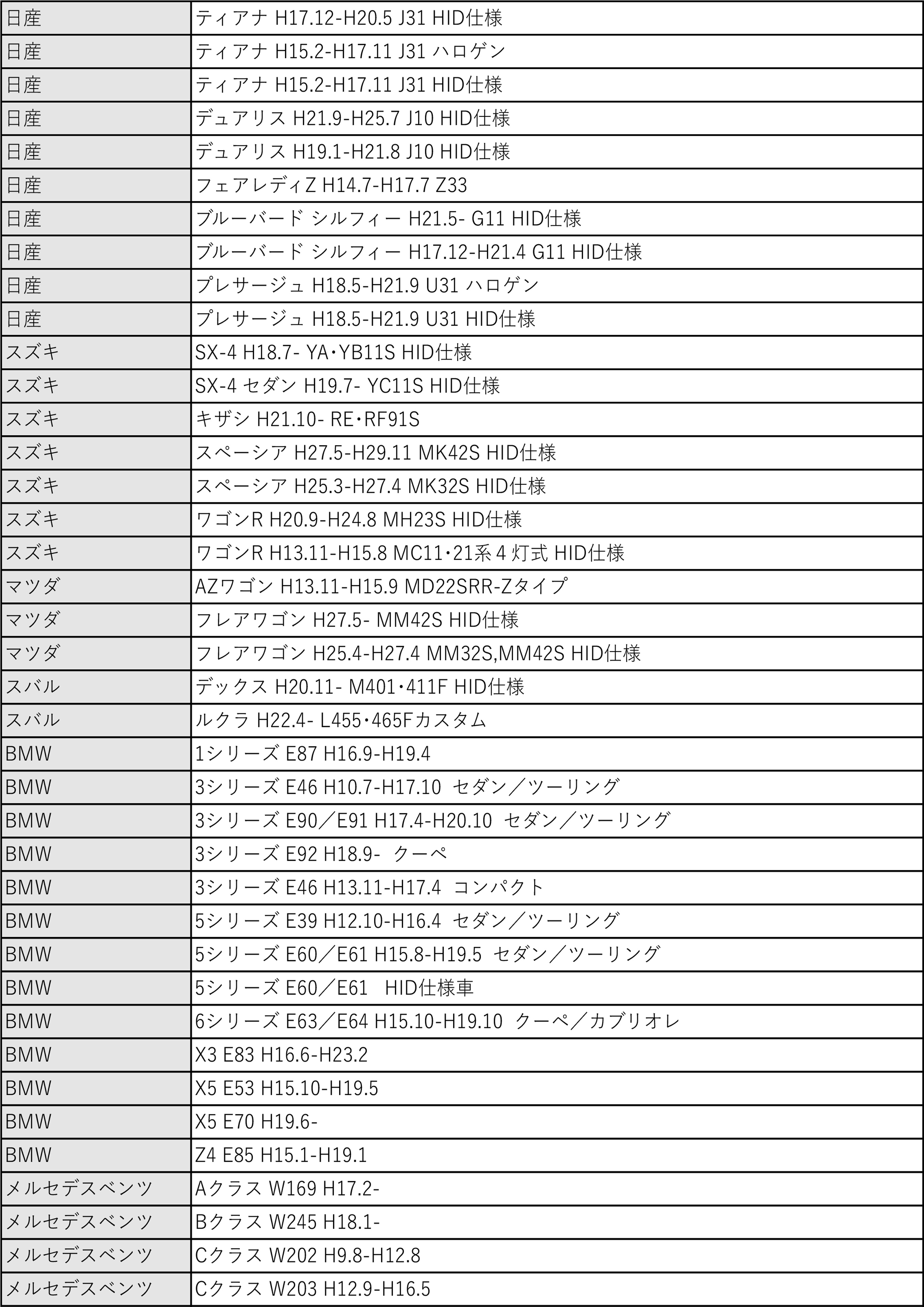 ※同一年式・型式でも規格が異なる場合がございますので、お車の規格を必ずご確認ください。