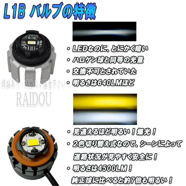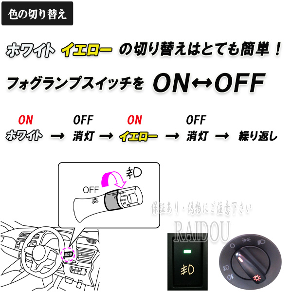 イエロー/ホワイトの2色切替L1B LEDフォグランプです。