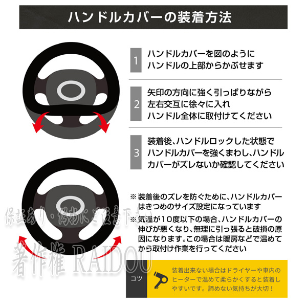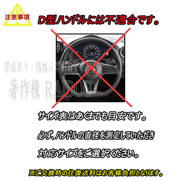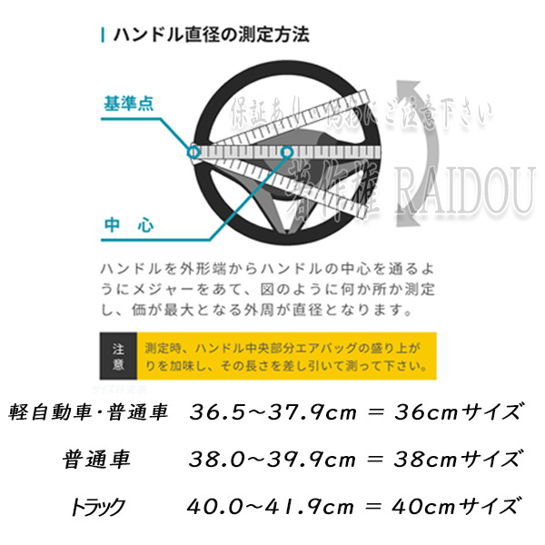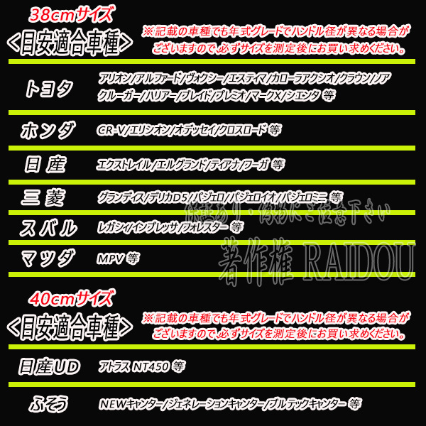 汎用品の為、必ずお車のハンドルサイズを測定後にお買い求めください。