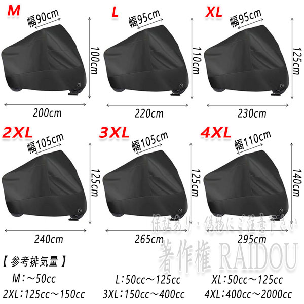 F3 800 バイクカバーシート 厚手 原付 大型 125cc 400cc 盗難防止リング 収納バッグ付き 6サイズ選択式