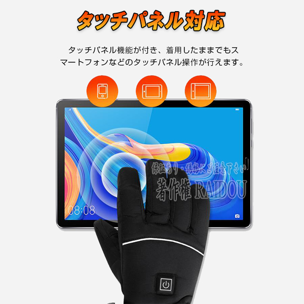 人差し指はタッチパネル対応の素材を使用し、手袋をはずさずにタッチ操作が使用できます。