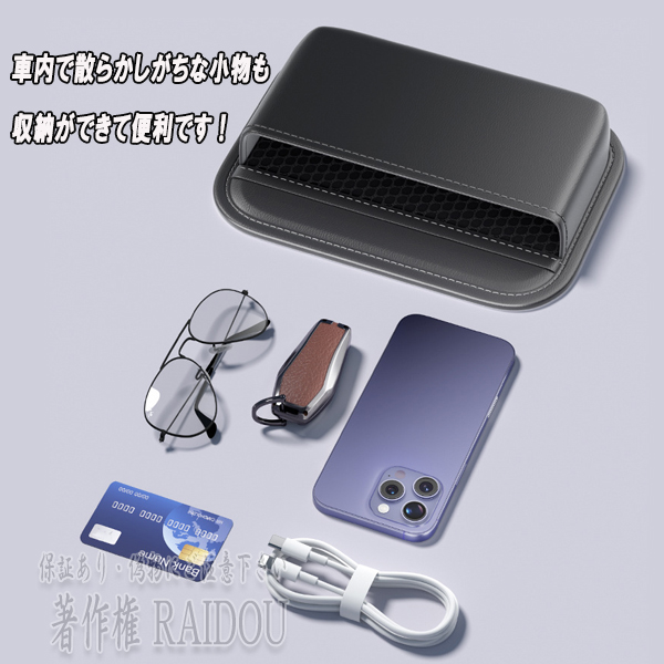 スマホ・メガネ・駐車券などの小物類をすっきり収納が可能。