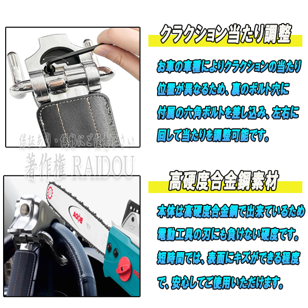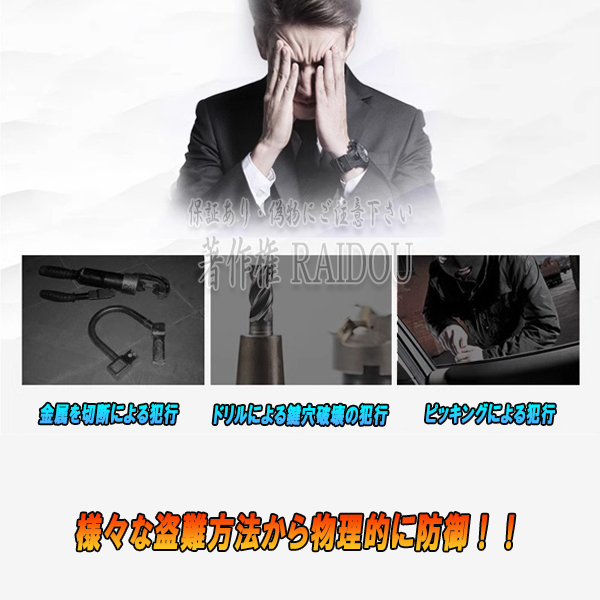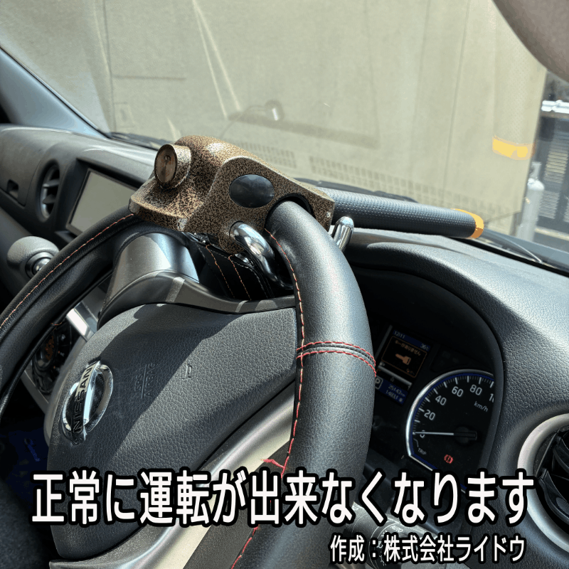 ・応用な取り付けでも、ハンドルが全回転できない為正常な運転が出来ず、盗難防止に繋がります。