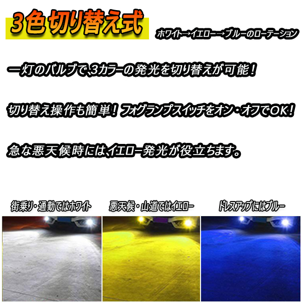 フォルクスワーゲンティグアン H20.9−H28.12 LED フォグランプ HB4 5000lm トリプルカラー