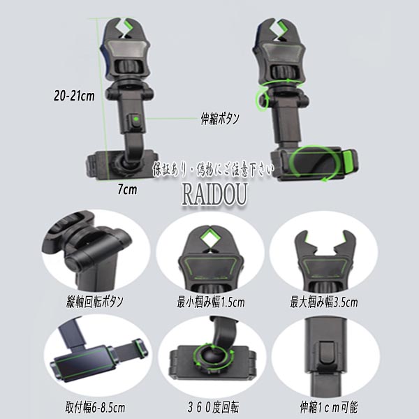 スマホの固定は3〜7インチの大きさに対応しており、360°自由に回転させることができます。