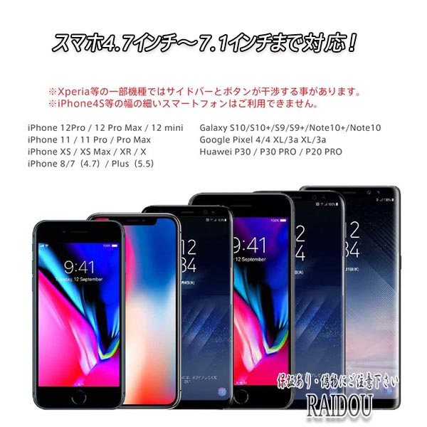 ※取り付けるスマートフォンのエッジ形状によっては、しっかりと固定できない場合がありますので、使用前に機器が固定されているか確認してください。