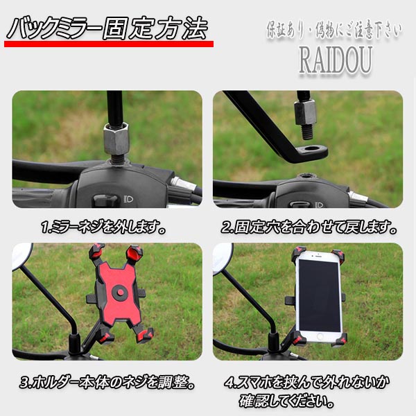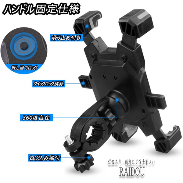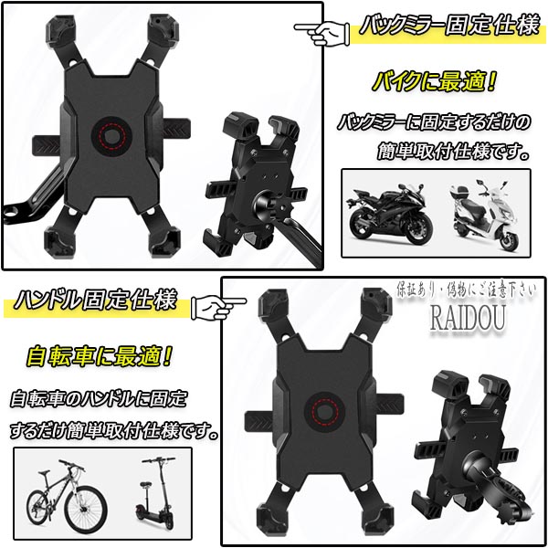 ※ハンドル固定用のパーツのみ付属します。バックミラー部分に固定する場合、ミラー固定式をご購入ください。