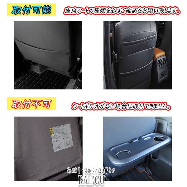 注)車種専用設計ではなく汎用品となります。座席シート裏側に収納ポケットがあるお車に適合いたします。