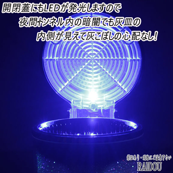 開閉蓋にもLEDが発光しますので、夜間・トンネル内の暗闇でも灰皿の内側が見えて灰こぼしの心配なし!