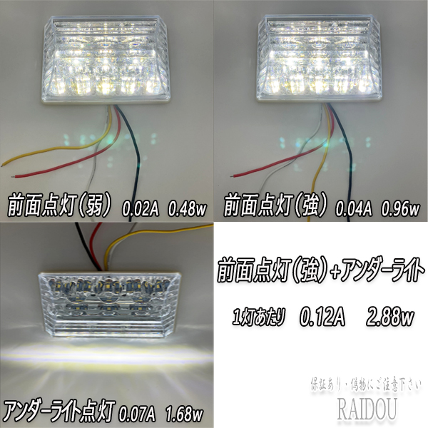 赤:アンダーライト(路面照らし)0.07A 1.68w