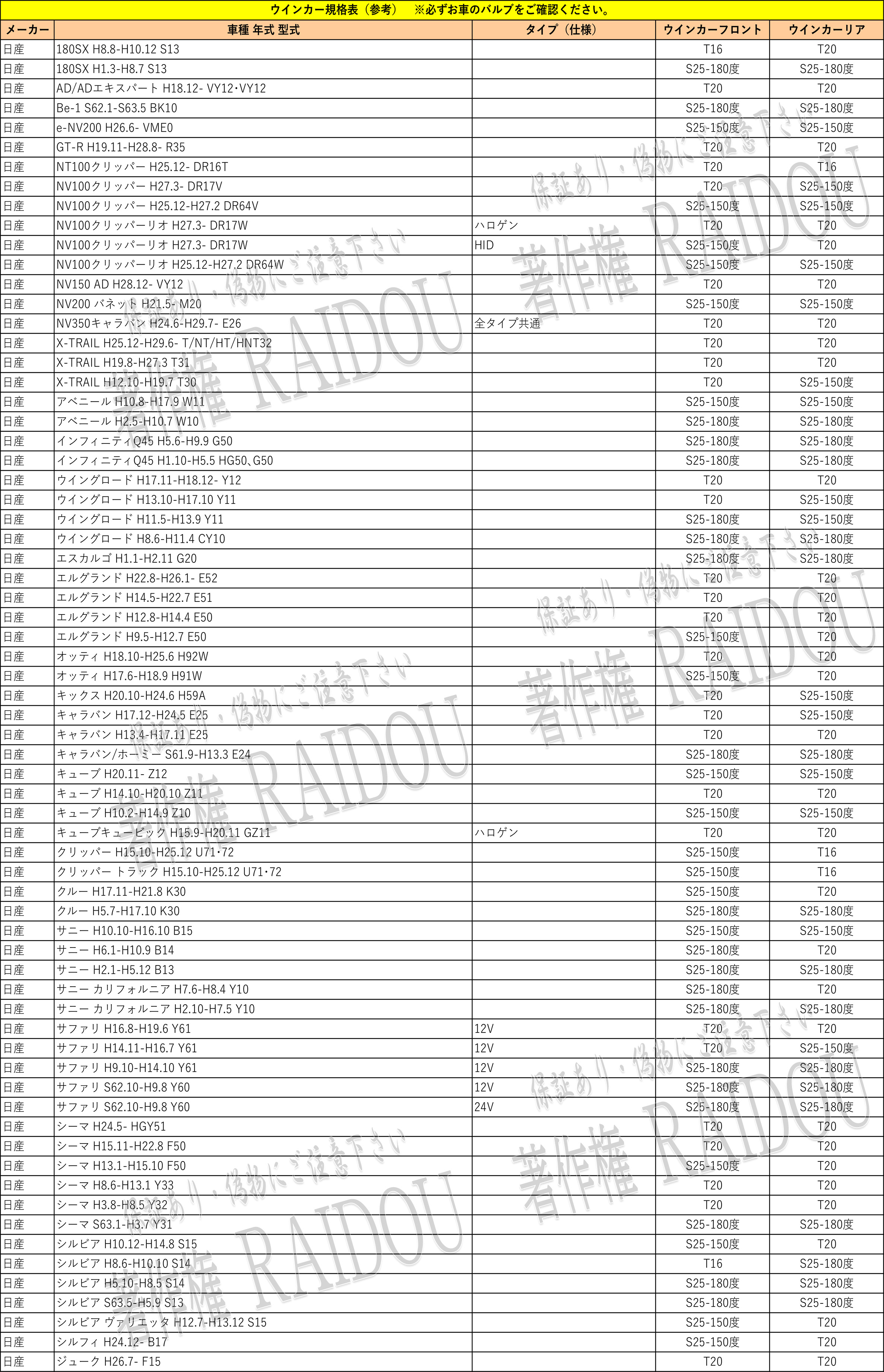 ※必ず、お車の規格をご確認ください。