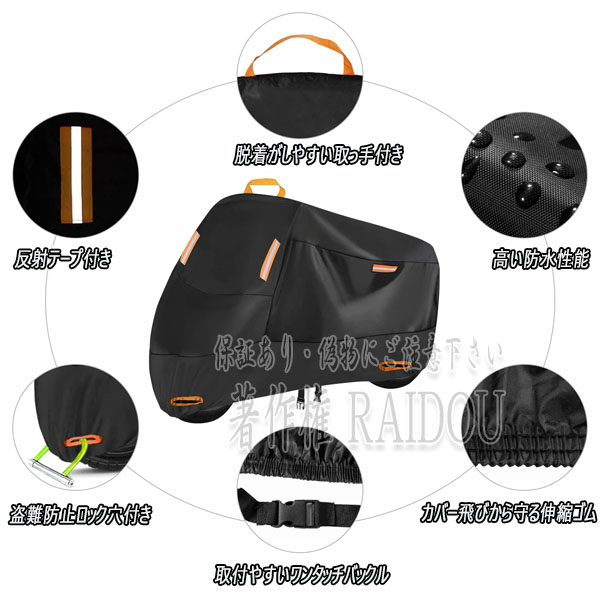 DUKE690 バイクカバーシート 厚手 原付 大型 125cc 400cc 盗難防止リング 収納バッグ付き 6サイズ選択式