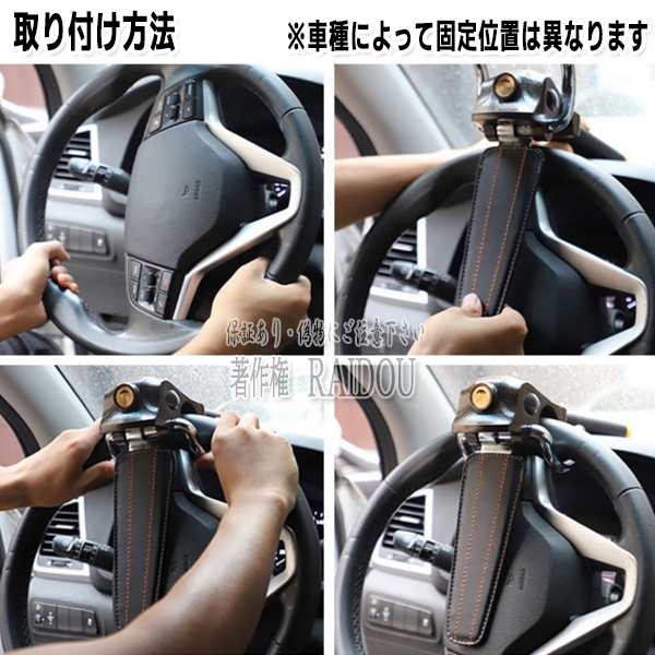 多段ロック式ハンドルロックは、様々な車種のステアリングに確実に固定できる便利な防犯アイテムです。