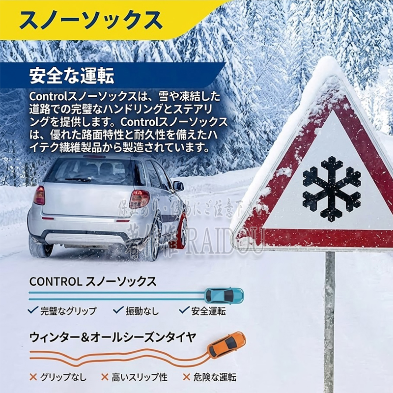 3. 時速50kmを超えないようにしてください。急ブレーキや急加速は避け、スリップを防ぐため一定の速度を維持してください。(車機能のABSやESPにも影響は与えません)