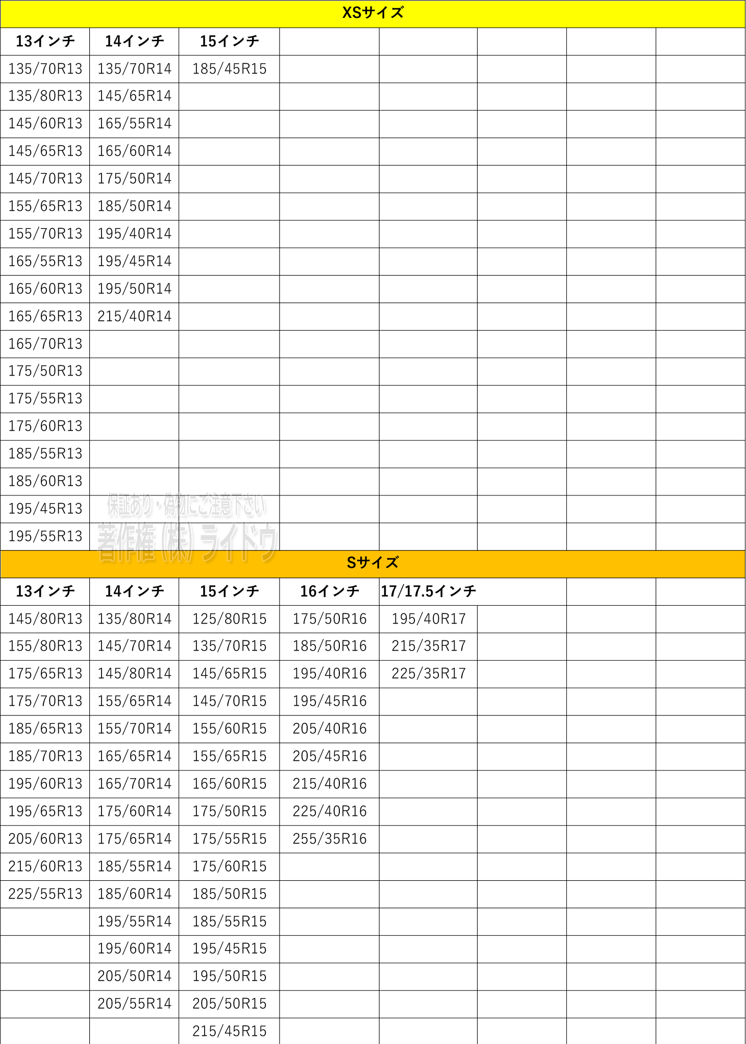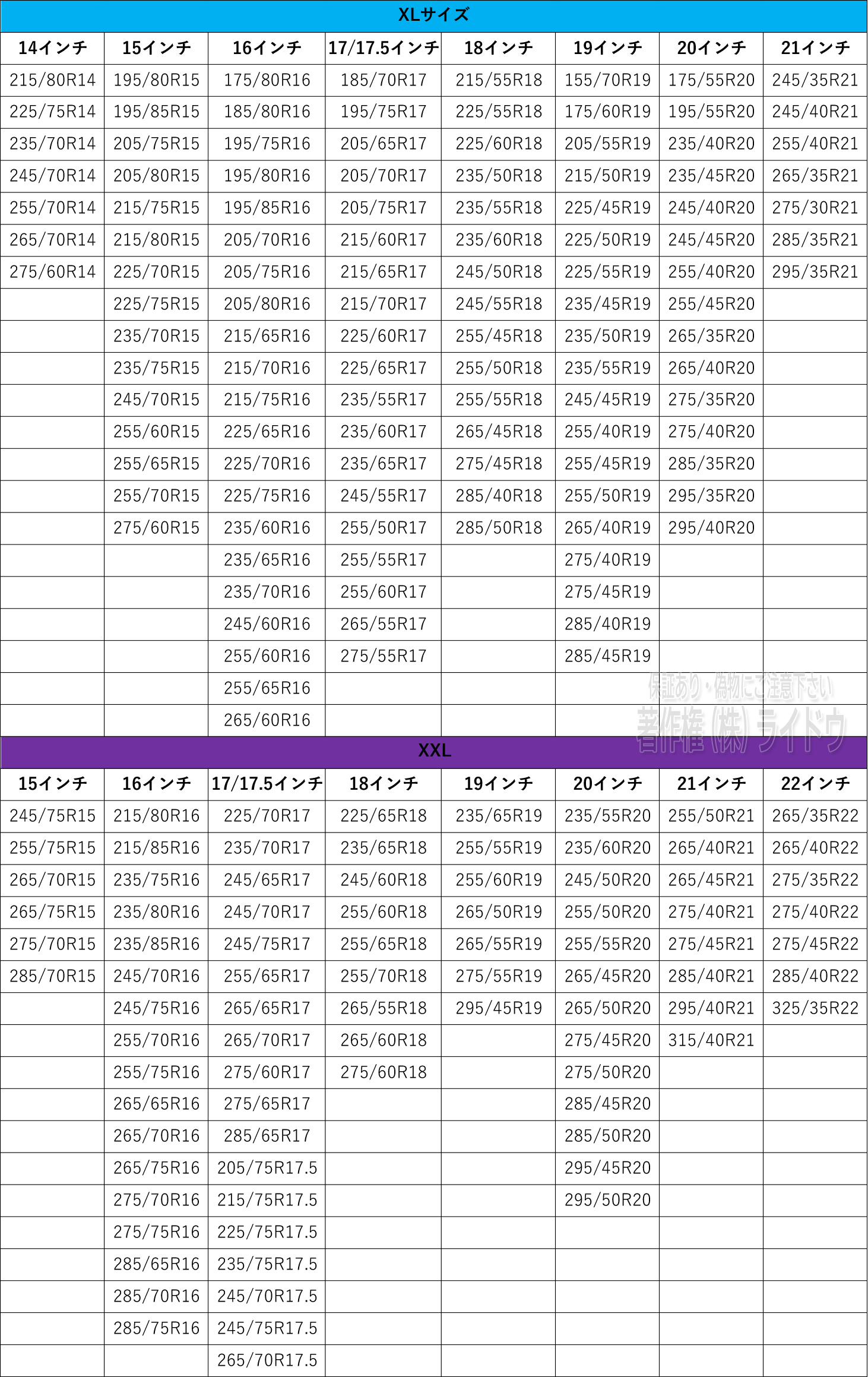 ・タイヤのサイズを確認してからサイズを選択ください。