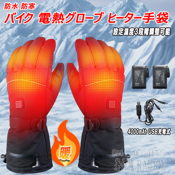 DUKE200 バイク 電熱グローブ ヒーター手袋 ヒーターグローブ 冬 防水 防寒
